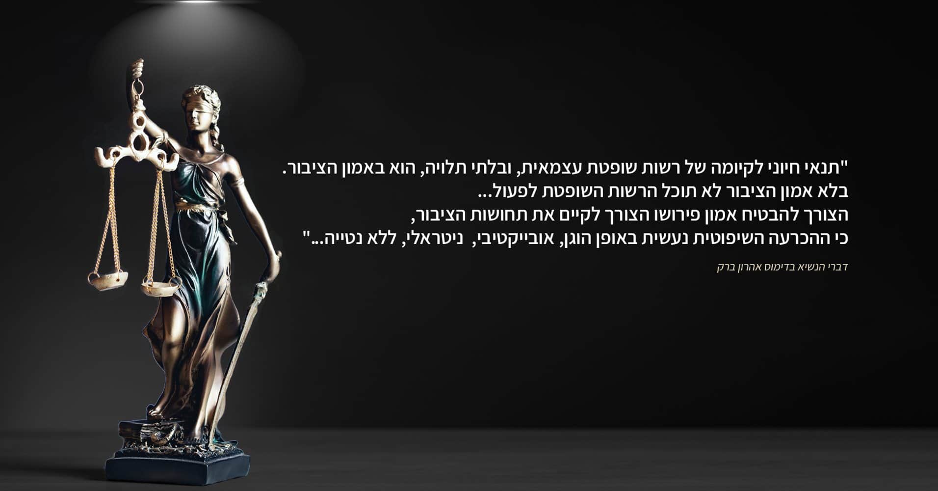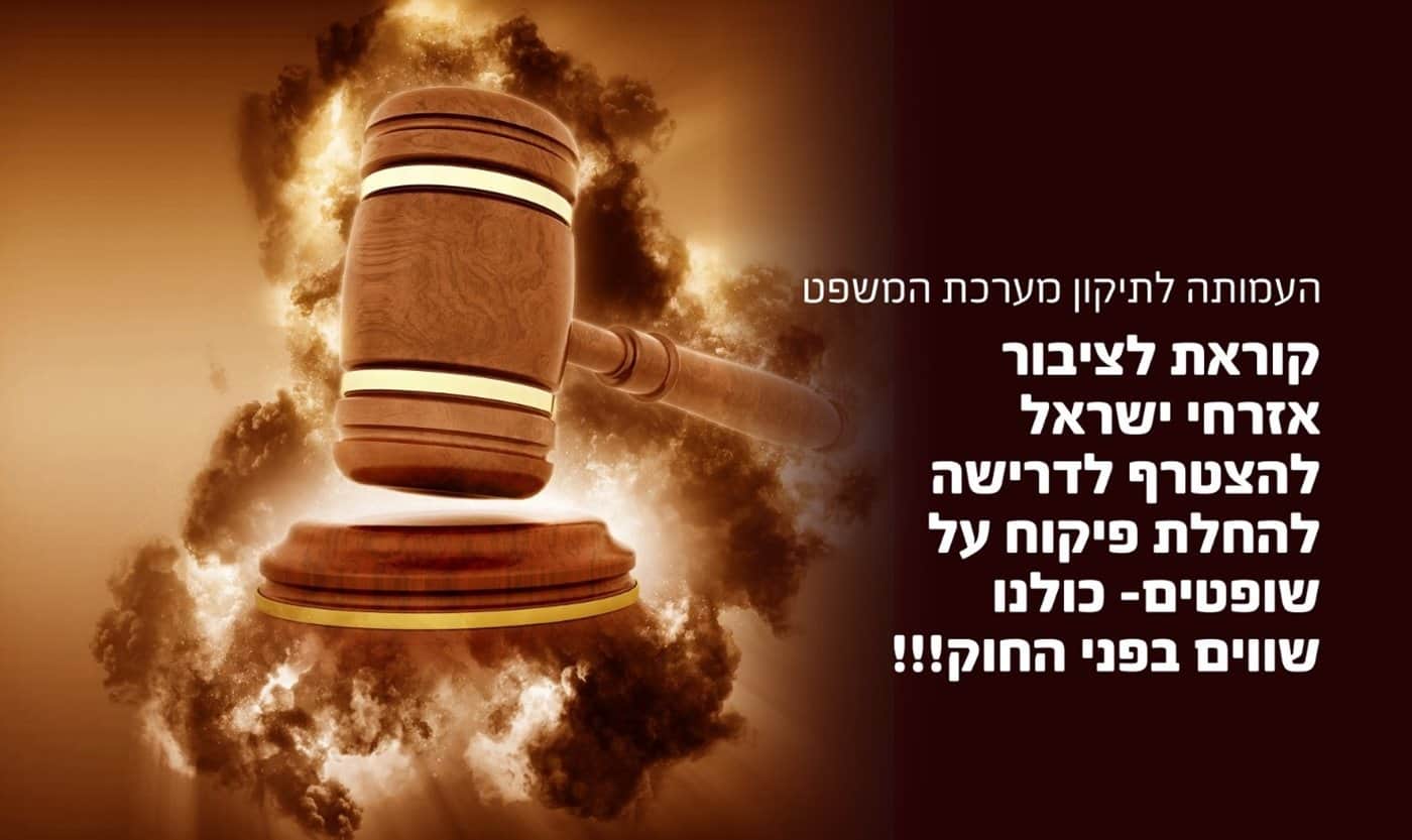 עתירה להחלת החוק על השופטים ולהבטיח זכויות האדם להליך שיפוט תקין; פיקוח ובקרה; מערכת איזונים ובלמים וענישה (רפורמה). הכל למען חיזוק מערכת המשפט להשיב אמון הציבור